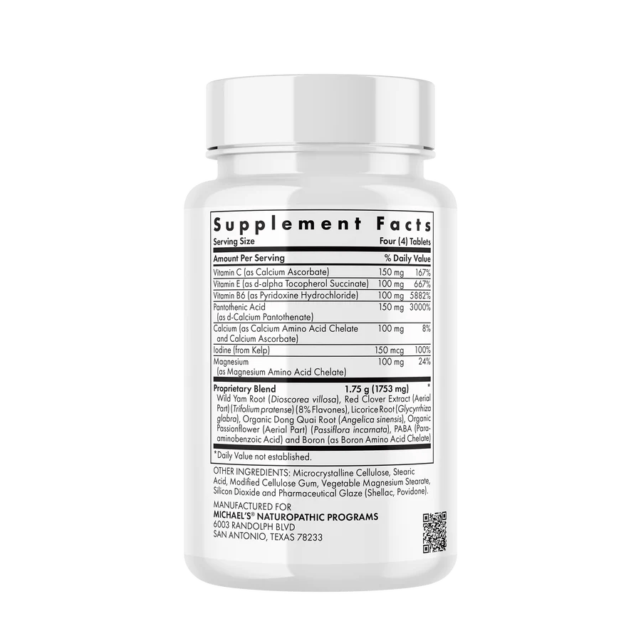 Vitamina C,B5, B6, D3, Calcio, Yodo, Magnesio y Combinado de Hierbas de Micahel's Health | Extractos orgánicos formulados para el equilibrio hormonal femenino | 90 tabletas vegetarianas