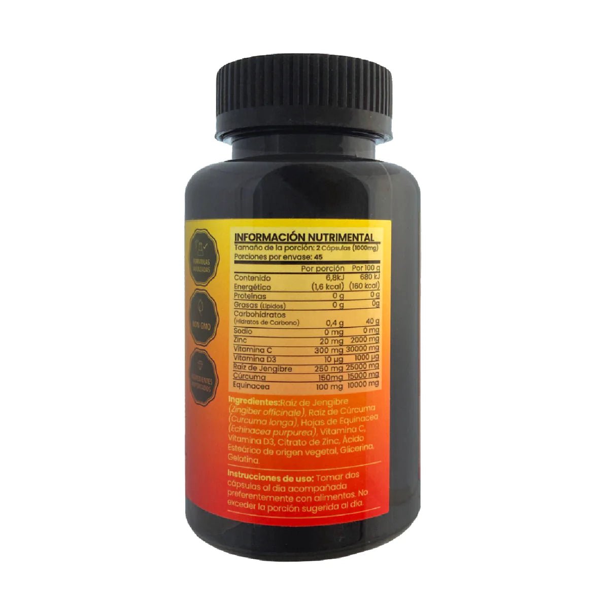 Vitamina C, Jengibre, Cúrcuma, Equinacea, D3 1000 mg Immune de 5H8 Nutrition | Promueve un Sistema Inmune Fuerte - Energía | 90 Cápsulas