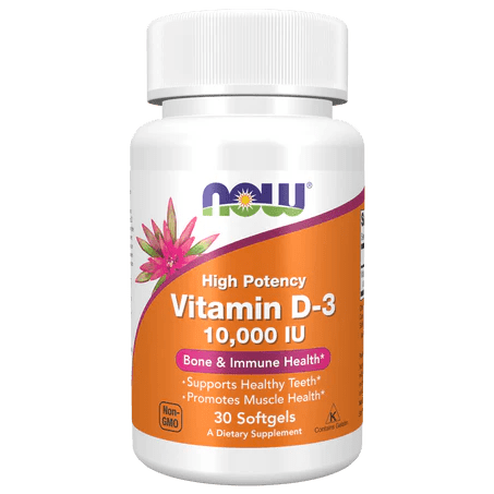Vitamina D3 de NOW Foods 10000 IU | Favorece la absorción de calcio y fósforo | 30 y 240 cápsulas blandas